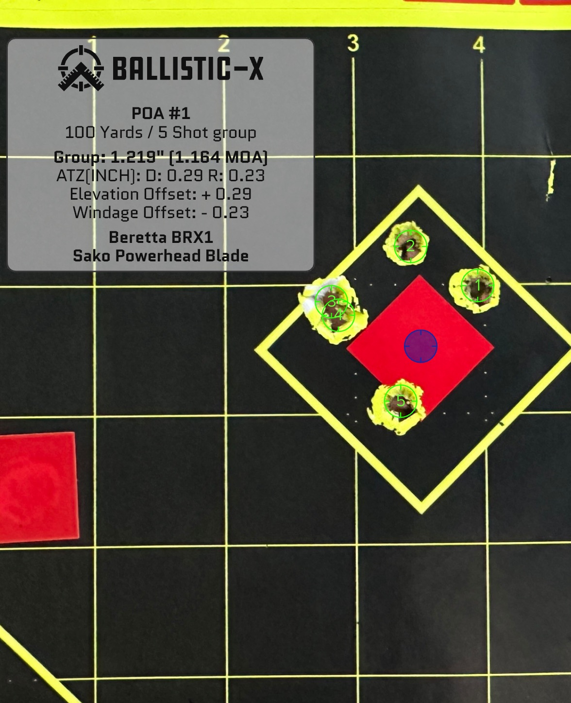 With Sako PowerHead Blade hunting loads, we achieved a 1.16 MOA five-shot group. Not bad — very good for a hunting rifle — but not the guaranteed sub-MOA we were rooting to see out of the box.