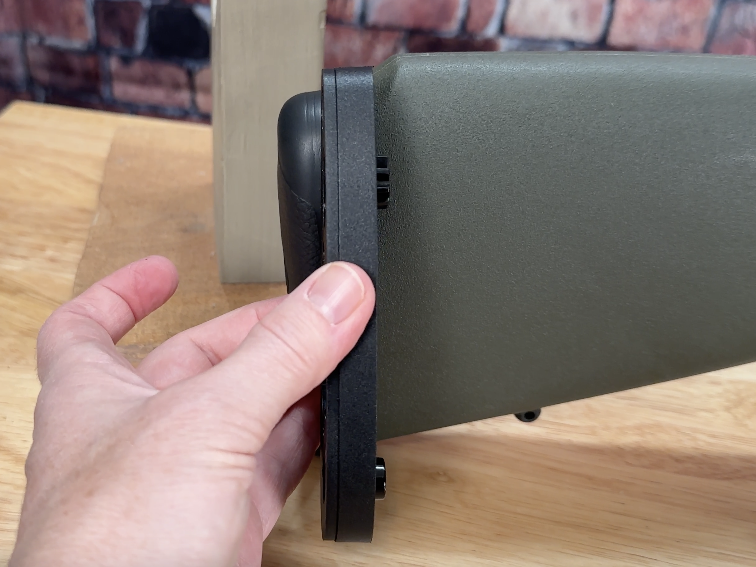The length of pull is adjustable with stacked ½” spacers. We removed a spacer to achieve a 13.5” LOP, and the system is simple enough to tweak as you’re setting the rifle up to fit. Grip pieces are modular, too — the rifle ships with a traditional, less-vertical hunting grip, but swapping it for the optional vertical/closed grip (a small $23 item) made a big difference for our purposes, with improved trigger reach.